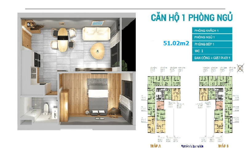 – Căn hộ Officetel có đa dạng diện tích từ 25-52m2.