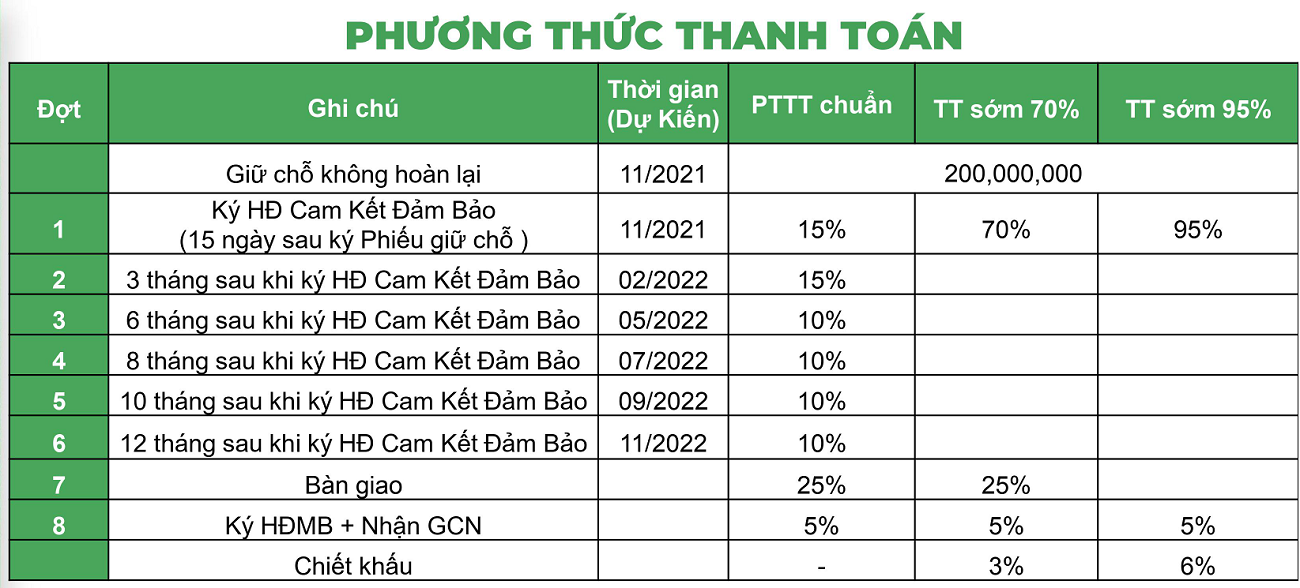 Thanh toán trong 13 tháng đến tháng 12/2022; đối tác ngân hàng đang cùng chủ đầu tư thống nhất các chính sách hỗ trợ mua cho khách hàng mong muốn vay và sẽ sớm nhất gởi đến quý khách hàng.