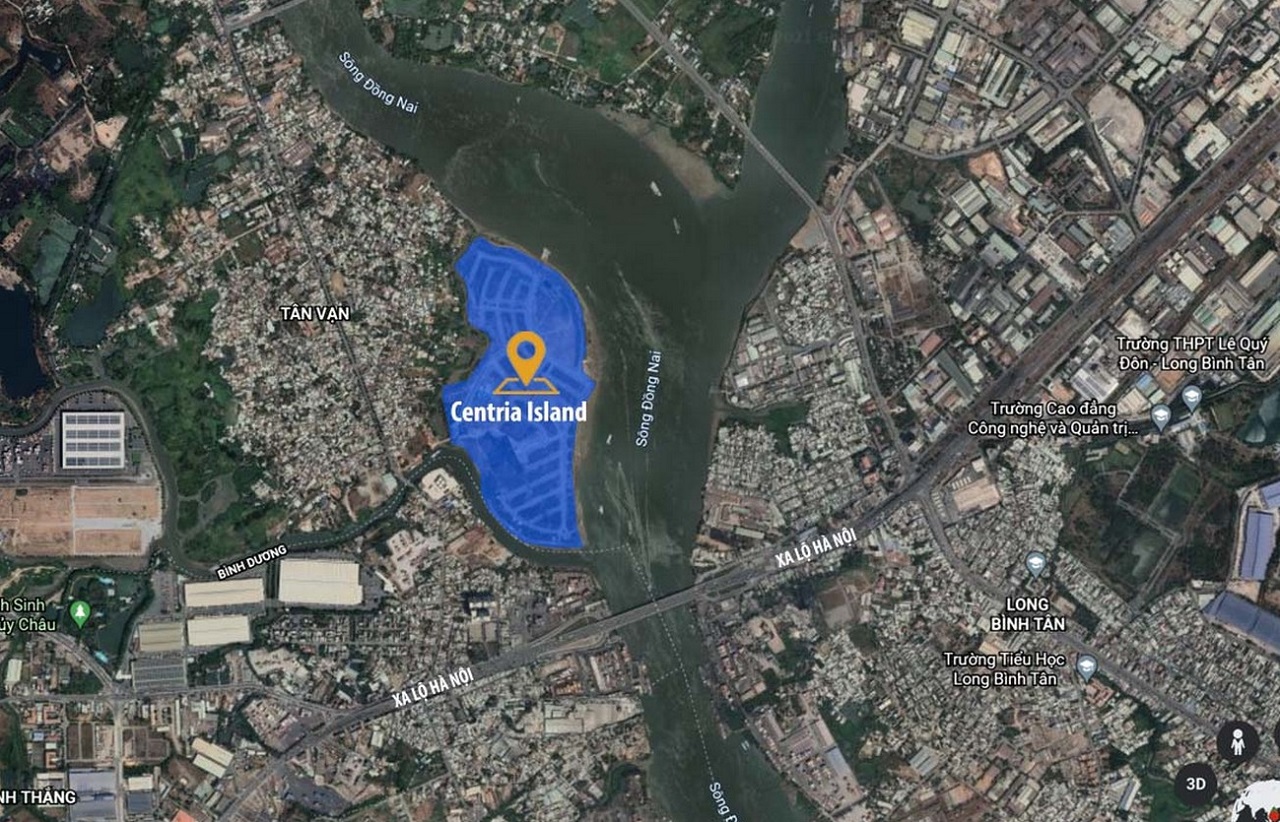 Vị trí địa chỉ dự án nhà phố Centria Island tọa lạc tại phường Tân Vạn, TP.Biên Hòa, tỉnh Đồng Nai. Dự án nằm ngay tại nút giao nhau giữa 3 tỉnh: TP.HCM – Đồng Nai – Bình Dương.