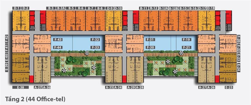 + Tầng 2: officetel – sân vườn