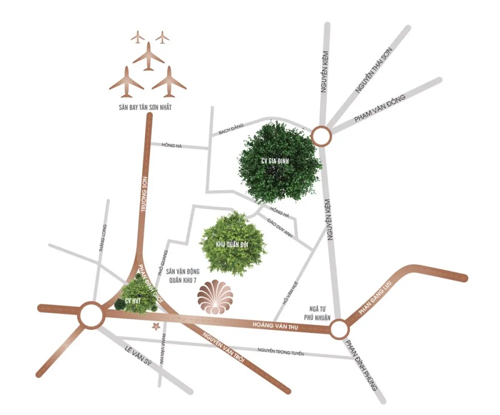 Từ Charmington T – ONE Tân Sơn Nhất, thông qua 2 tuyến đường chính trên, cư dân có thể thuận tiện di chuyển đến Sân bay Tân Sơn Nhất và các quận huyện khác như Bình Thạnh, Thủ Đức, Tân Bình… Tại Tp Hồ Chí Minh thời điểm này, vô cùng khó để tìm thấy dự án có vị trí độc đáo như Charmington T One Tân Sơn Nhất, đặc biệt địa bàn quận Phú Nhuận vốn dĩ đã khan hiếm đất trong nhiều năm trở lại đây.