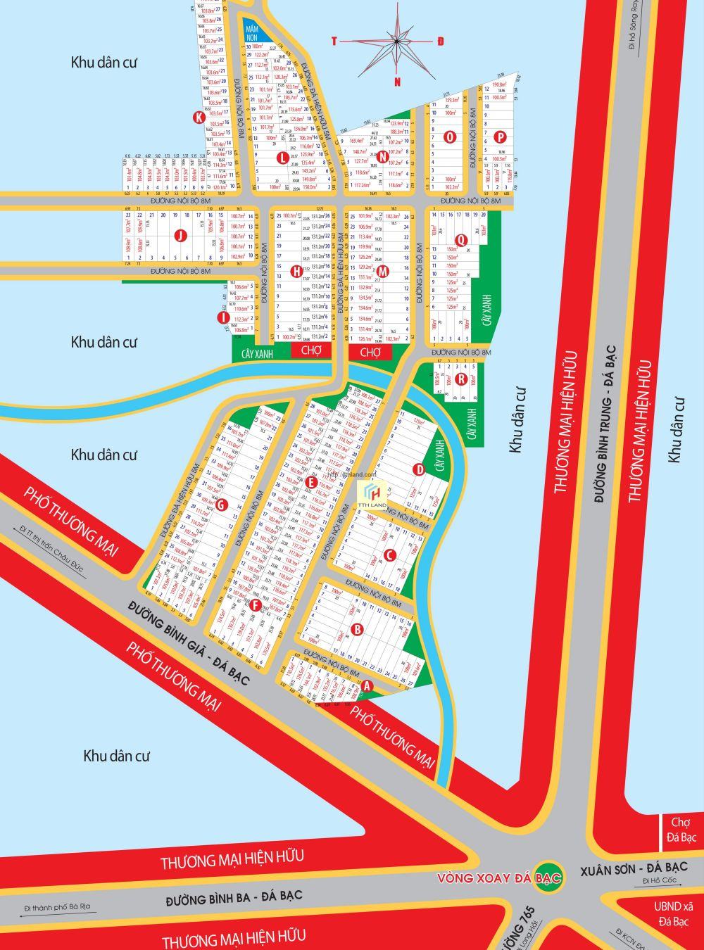 | Hạ tầng: Đường nhựa, công viên, vỉa hè, điện nổi, cống thoát nước. | Giá bán: 2,5 – 5 triệu/m2 |
