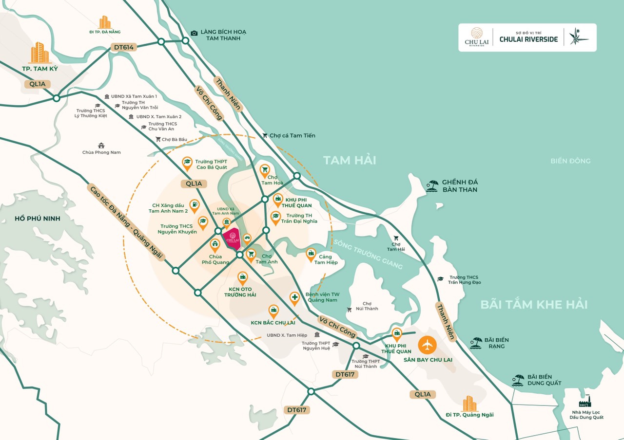 Chu Lai Riverside Núi Thành Quảng Nam được giới chuyên gia nhận định như một viên kim cương mới xuất hiện “khởi đầu” cho sự sôi động trở lại của thị trường BĐS Miền Trung. Chu Lai Riverside hứa hẹn sẽ là chốn an cư lý tưởng kiến tạo cuộc sống xanh – tươi – đẹp bên con sông Trường Giang, và là bến đổ đầu tư mới cho khách hàng tìm kiếm lợi nhuận.