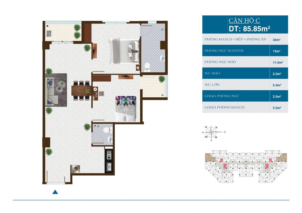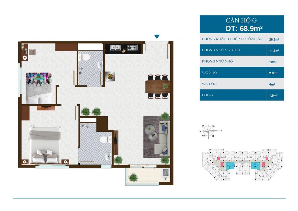 Loại căn hộ 2 ~ 3 phòng ngủ