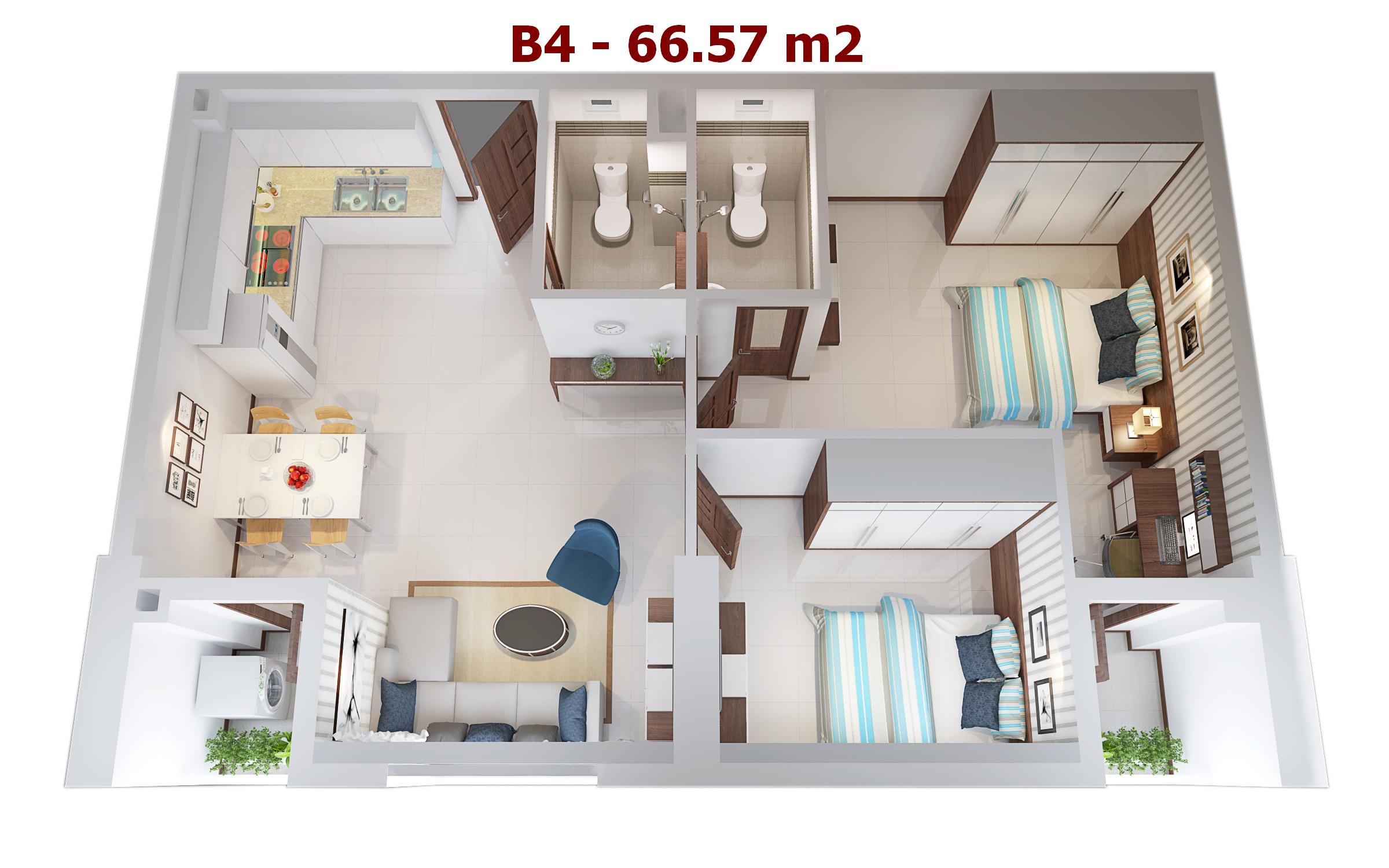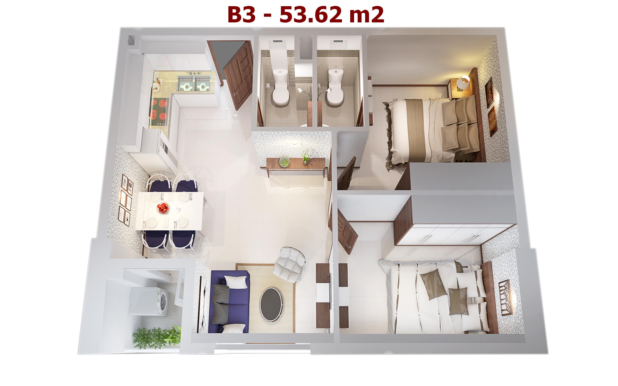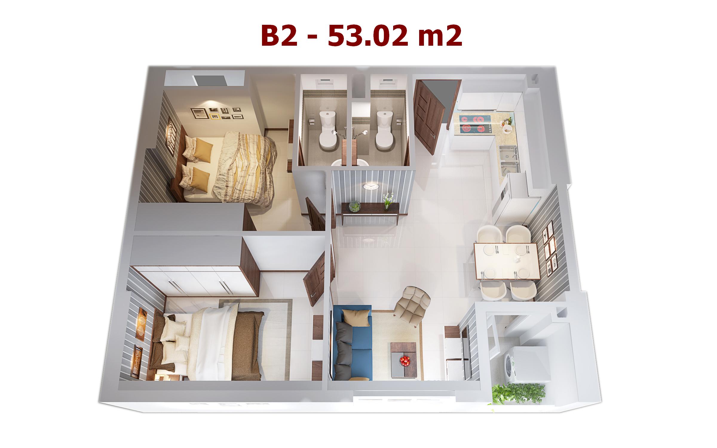 IDICO Tân Phú cung cấp cho thị trường tổng cộng 741 căn hộ đa dạng diện tích từ 42 – 72m2 với loại hình 2PN.