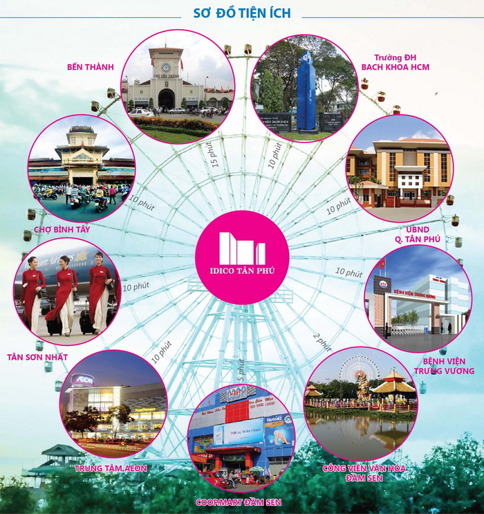 Dự án căn hộ cao tầng Tân Phú IDICO hay còn có tên gọi khác là IDICO Đầm Sen nằm tại khu vực trung tâm của Quận Tân Phú, ngay liền kề là hàng loạt các tiện ích dịch vụ đẳng cấp hiện hữu, nổi bật nhất là KDL Đầm Sen – quận 11.