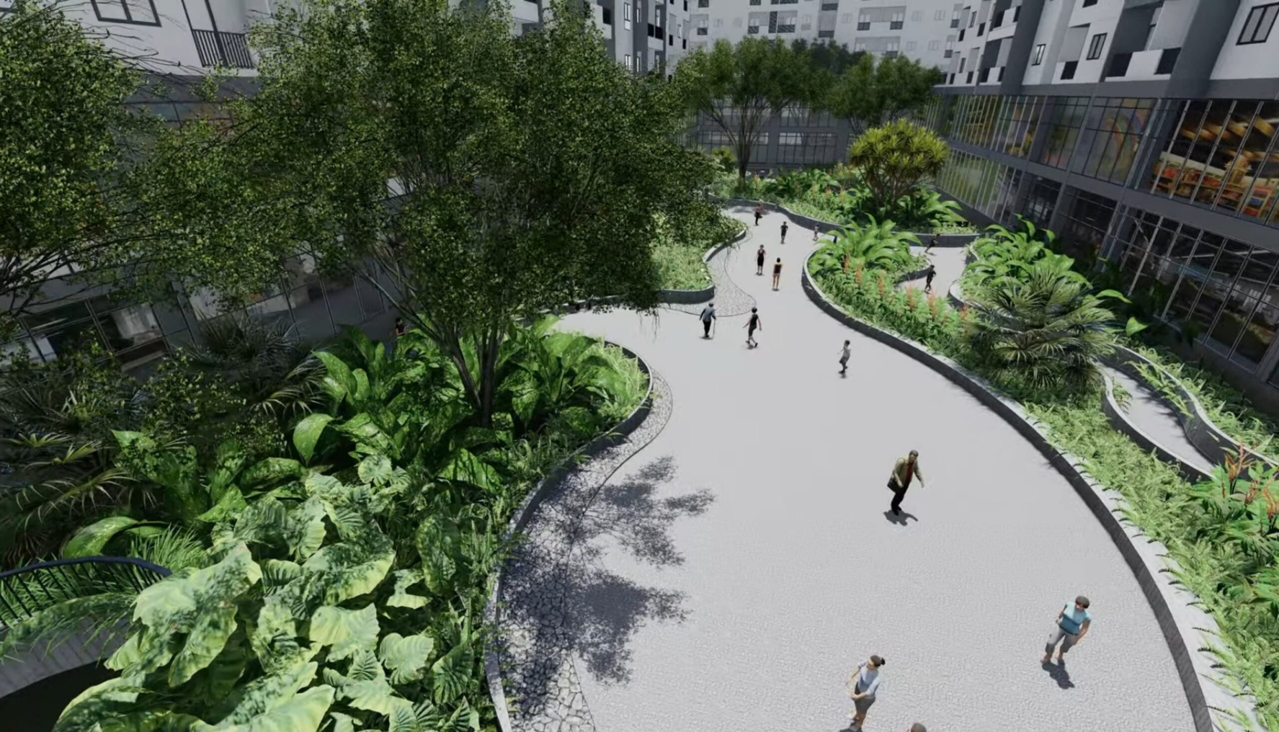 Tại tầng trệt có khu thương mại dịch vụ đa năng tạo sự tiện nghi cho cư dân.