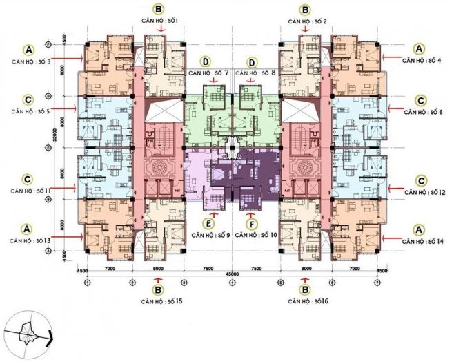 o Số lượng căn hộ: 134 căn : mỗi sàn 16 căn