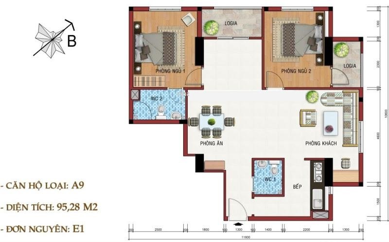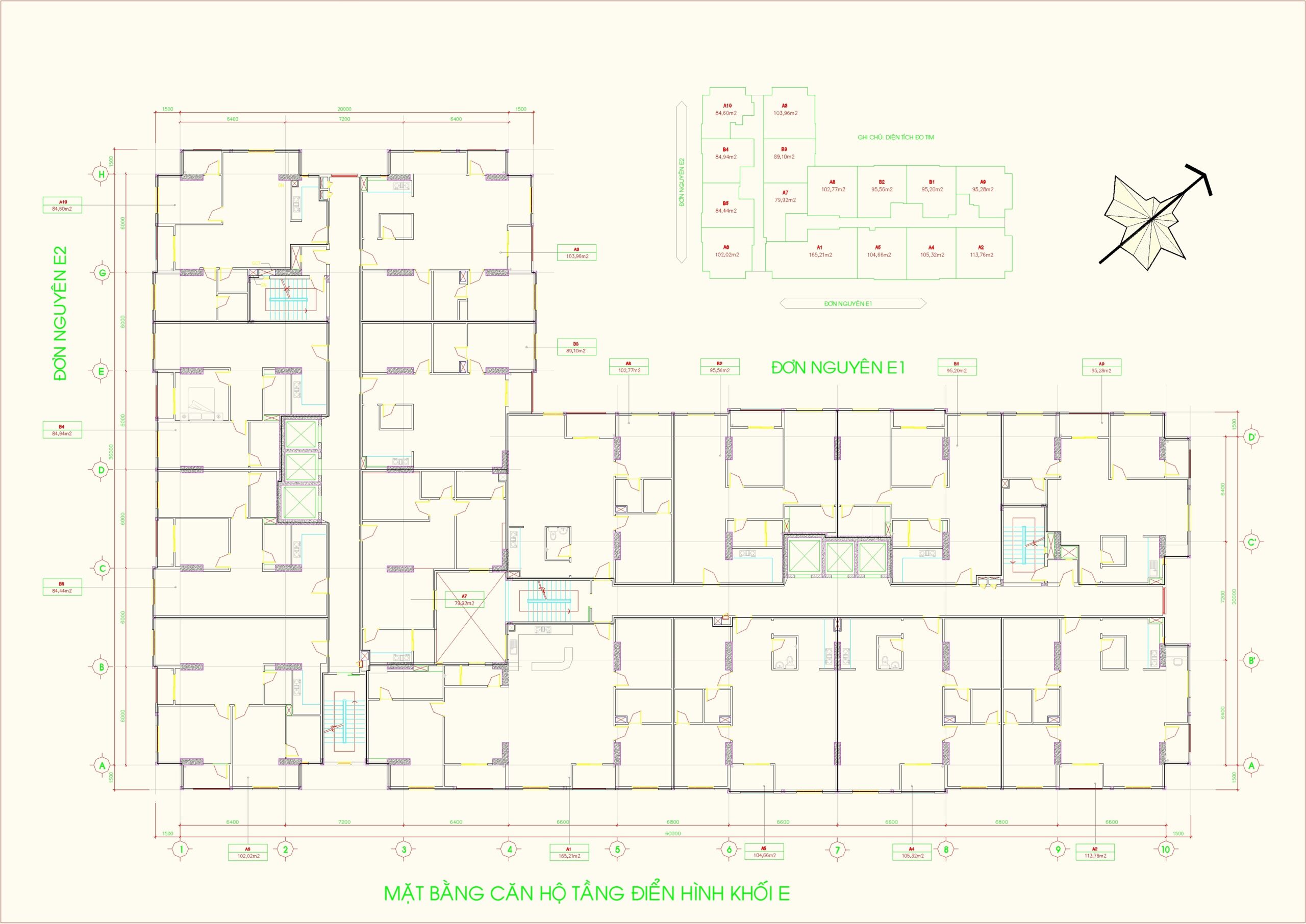 Mặt bằng tầng điển hình khối E – Chung cư Mỹ Đức