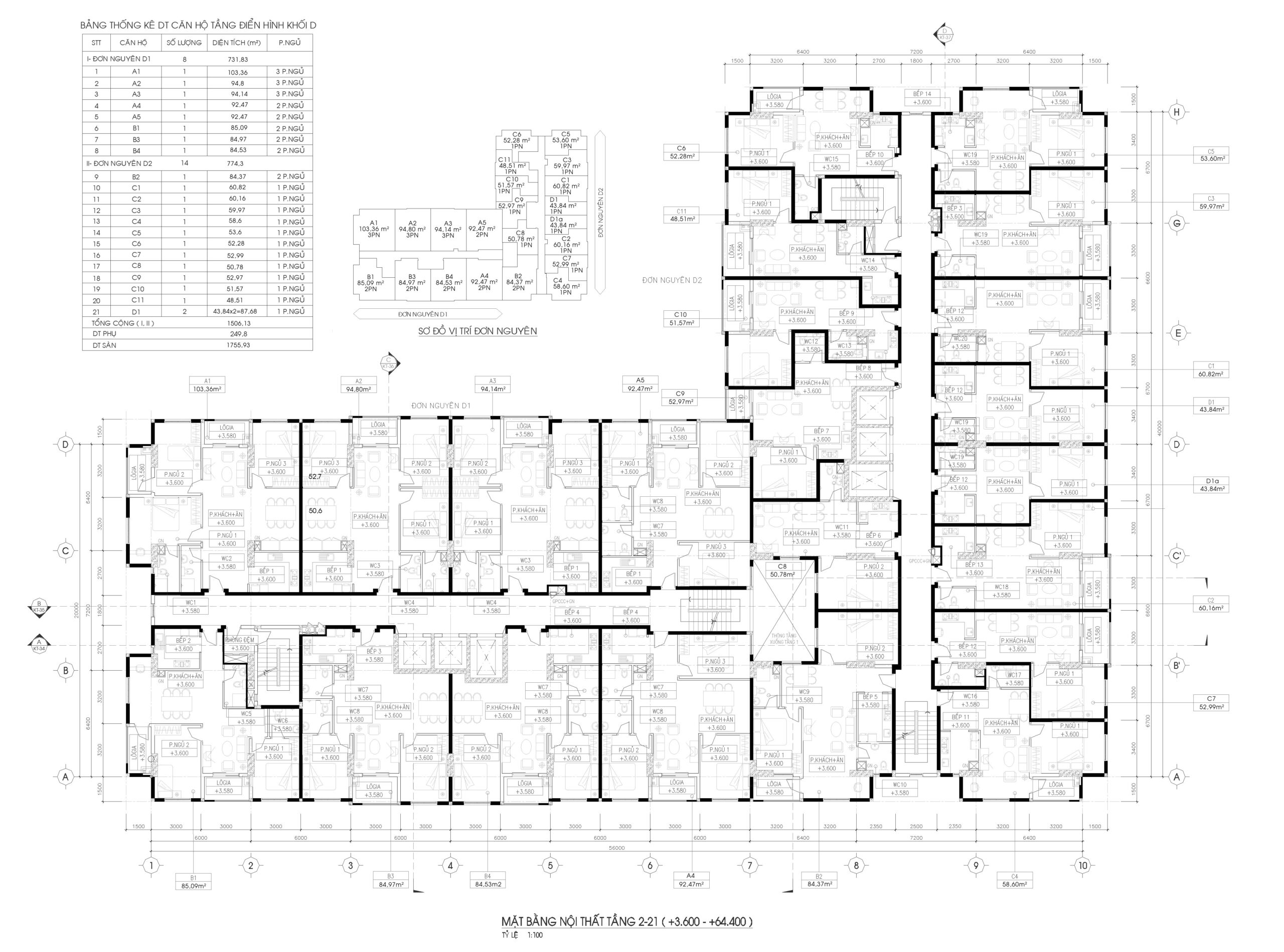 Mặt bằng tầng điển hình khối D – Chung cư Mỹ Đức