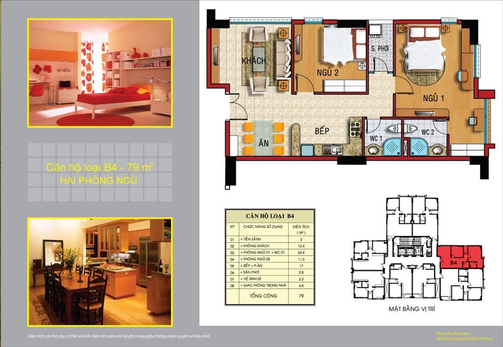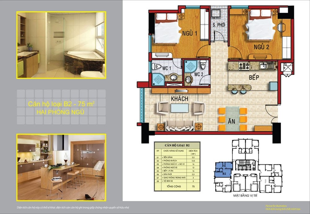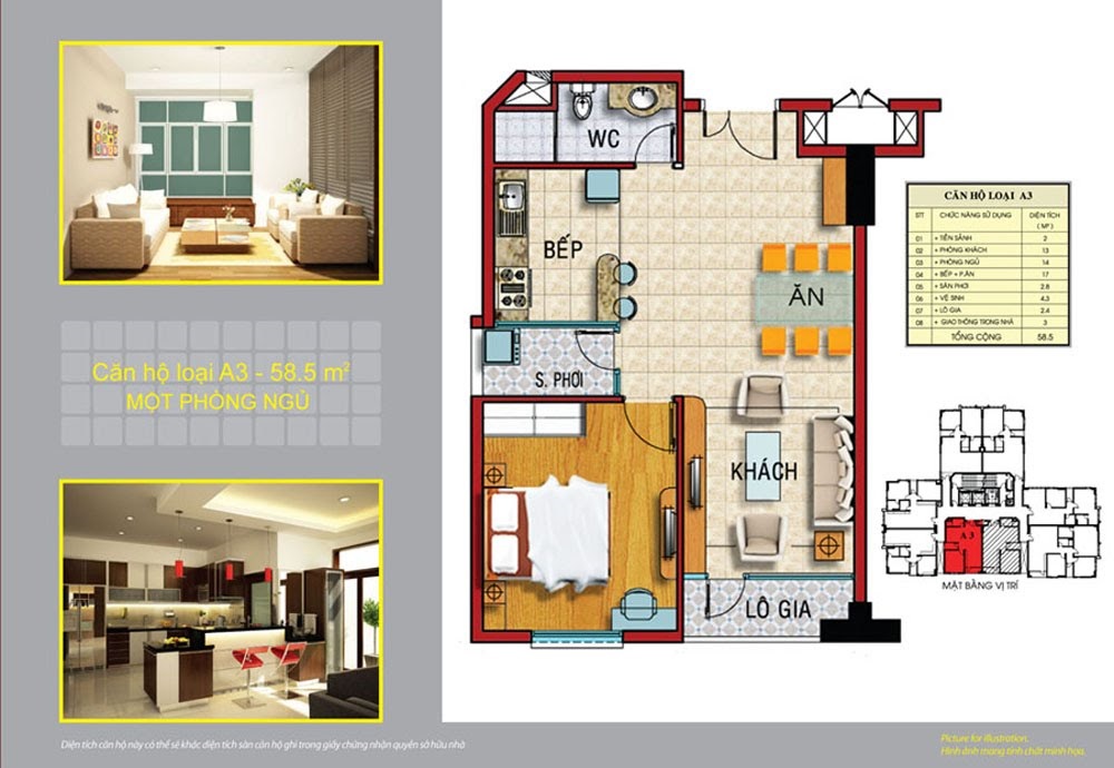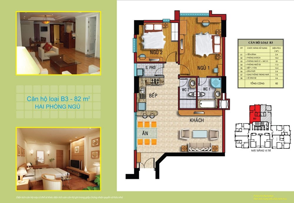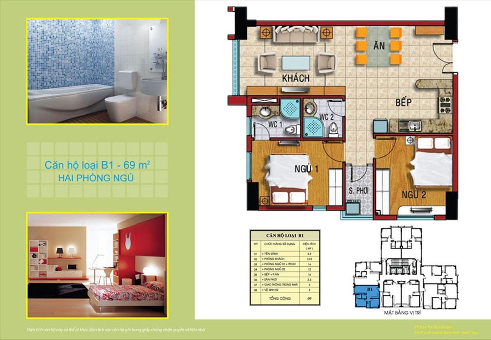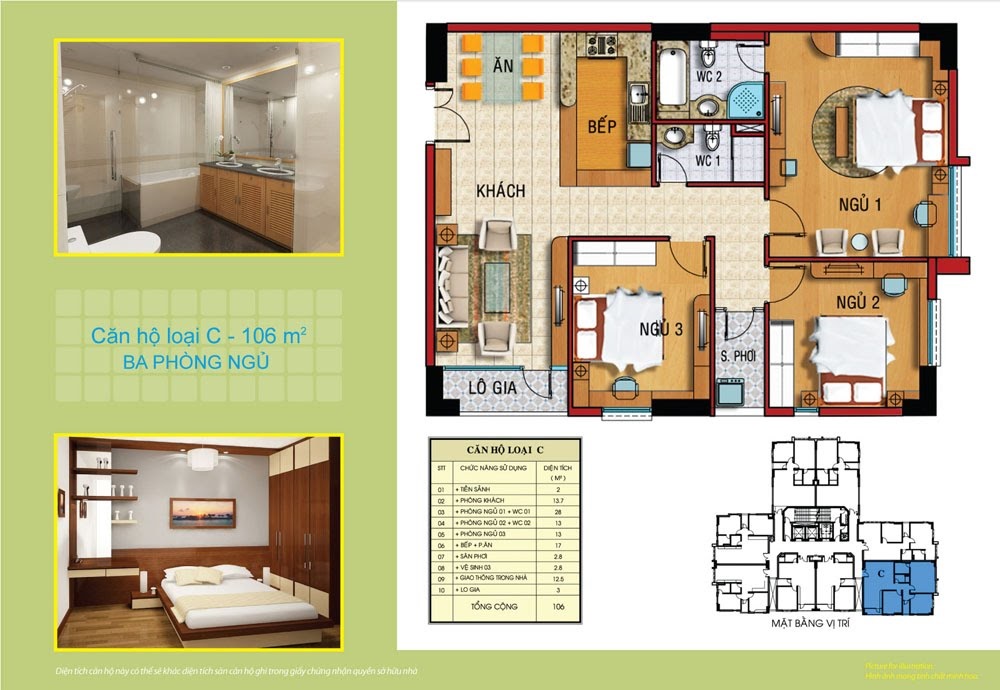| Diện tích căn hộ | Từ 58 m2 – 106 m2 (1 – 3 PN) |