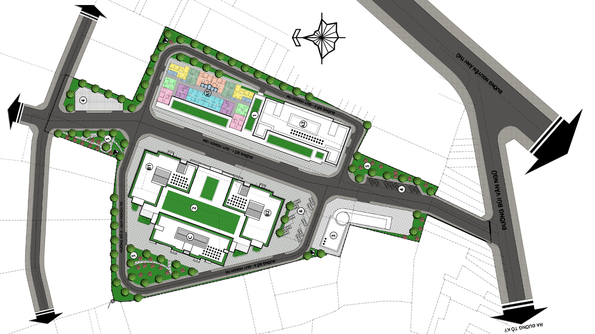 Tổng thể dự án STCITY bao gồm 5 block, trong đó Block A và Block B có view hướng về mặt tiền đường Nguyễn Ảnh Thủ. Hướng chính đi vào chung cư STCITY từ đường Bùi Văn Ngữ thông qua đường nội bộ có quy hoạch rộng 12m.