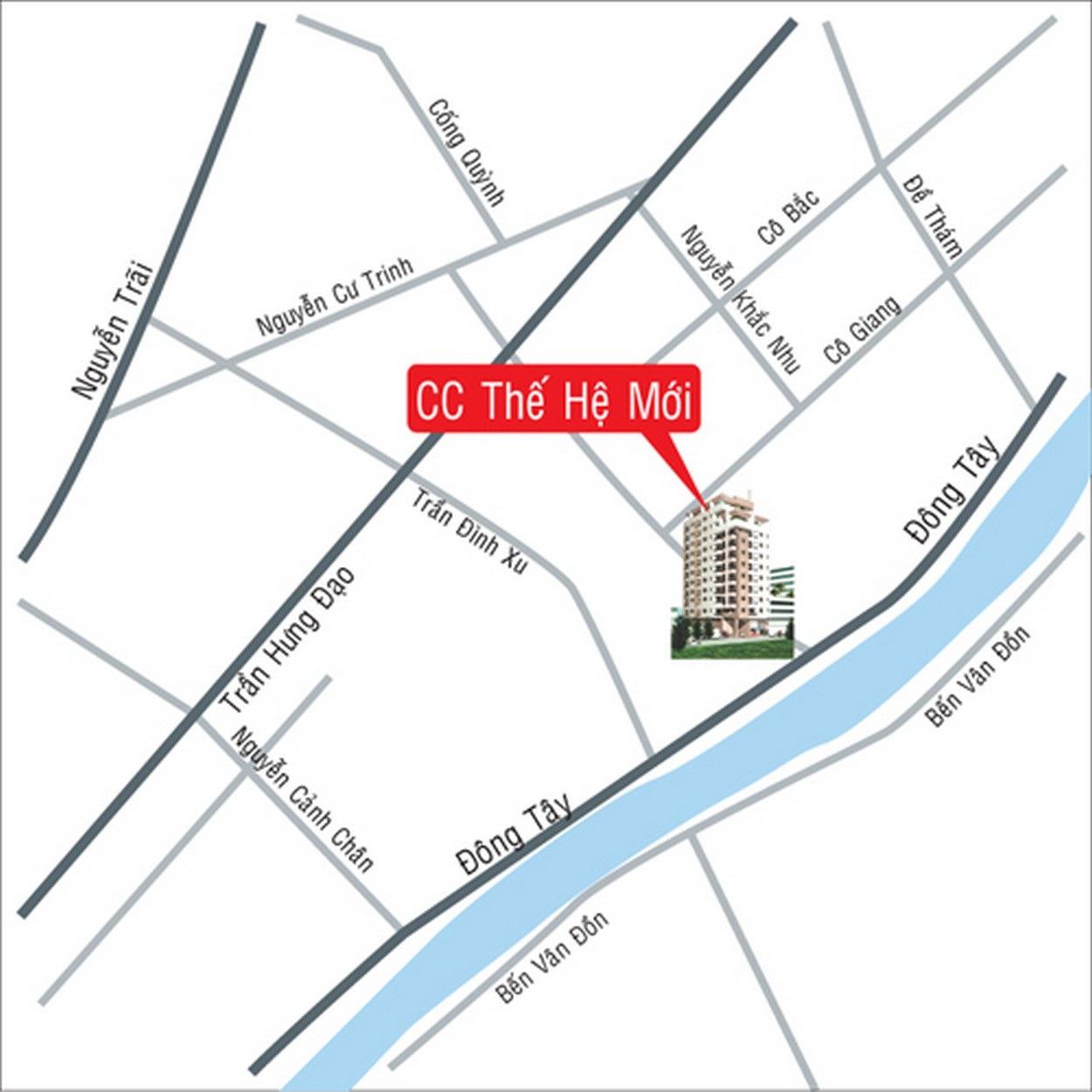 Chung cư Thế Hệ Mới là tòa nhà đặc biệt, được bố trí nằm trên mặt tiền của con đường lớn Hồ Hảo Hớn với quy hoạch là 1 tầng lầu + 1 tầng hầm + một tầng trệt và 1 tầng lửng.