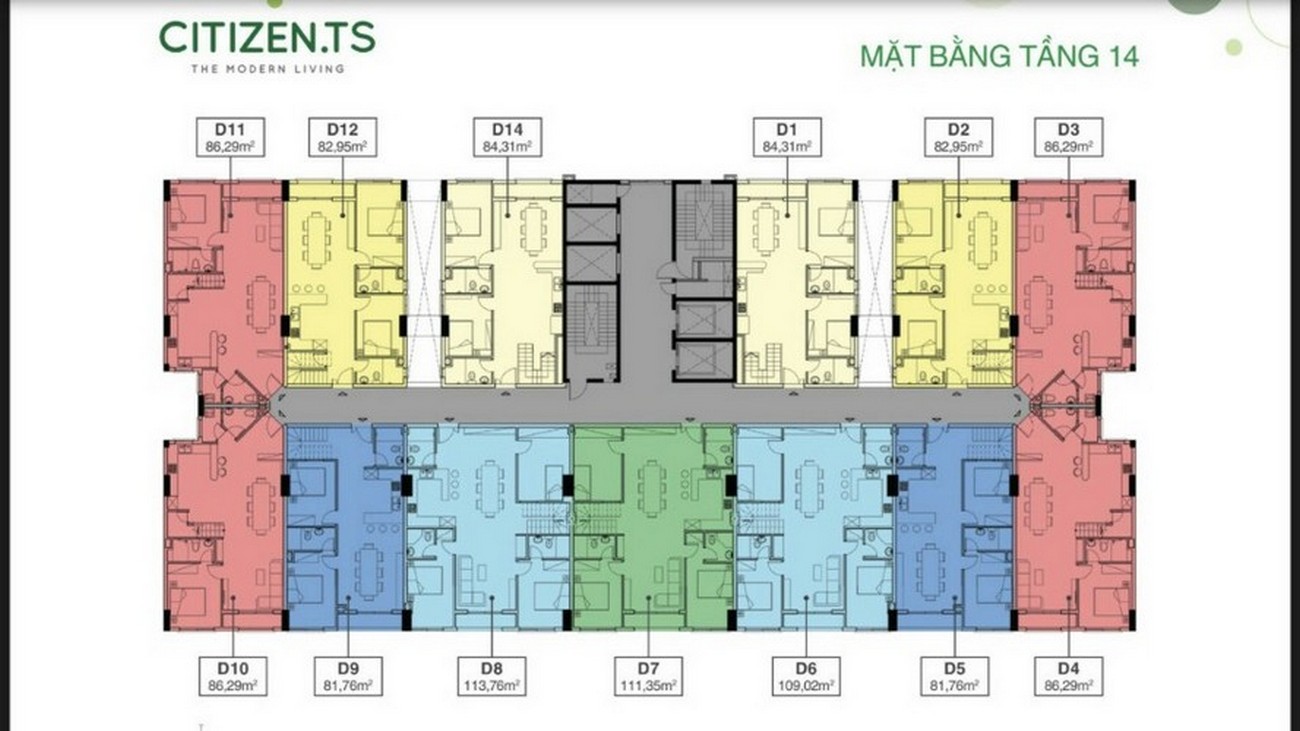 Mặt bằng tầng 14 dự án căn hộ chung cư Citizen Trung Sơn