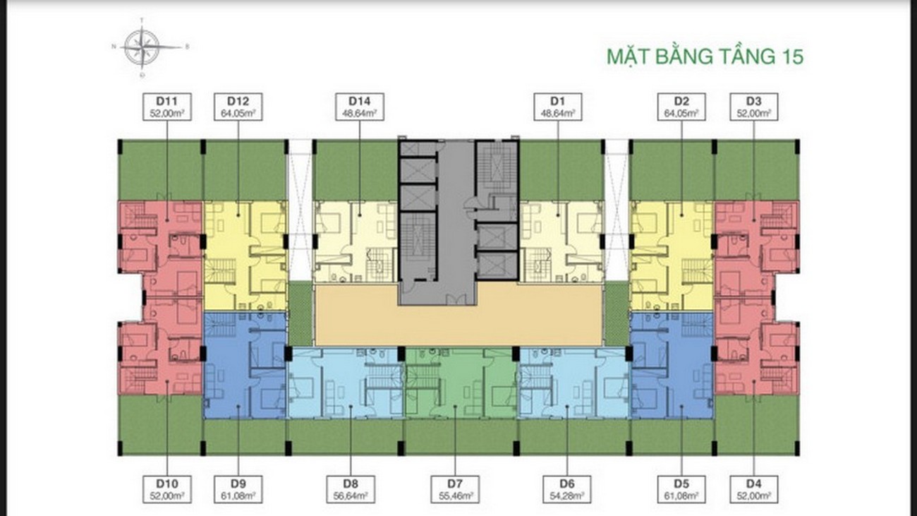 – Tầng 14: căn hộ penthouse.