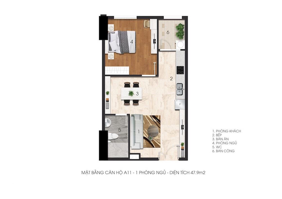 | Quy mô dự án | • 1 tòa tháp cao 15 tầng cung ứng 225 căn hộ cao cấp