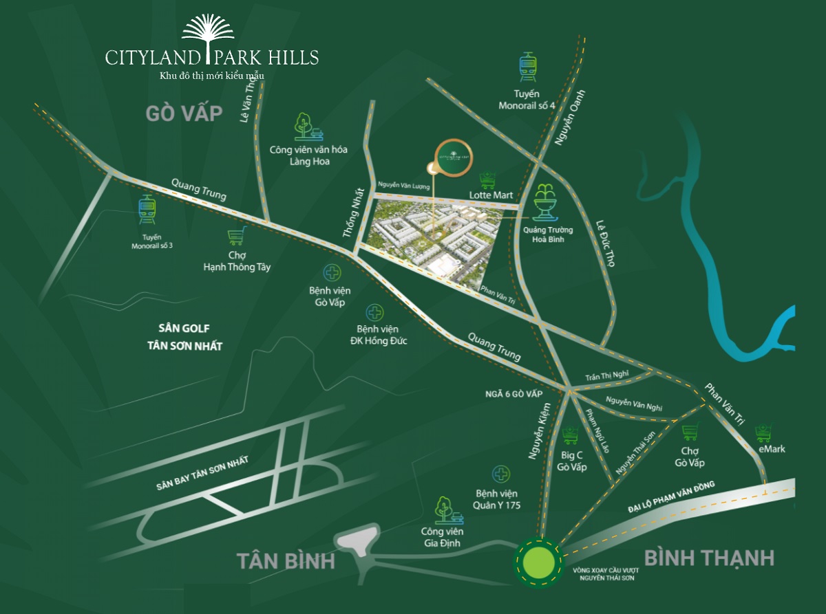 Ngoài ra, cư dân Cityland Park Hills còn được thừa hưởng những tiện tích ngoại khu khác như: siêu thị E-Mart, công viên Gia Định, gần kế sân bay Tân Sơn Nhất, Bệnh viện 175, Bệnh viện Quốc Tế Vũ Anh, Vincom Quang Trung, Saigon Mall,…