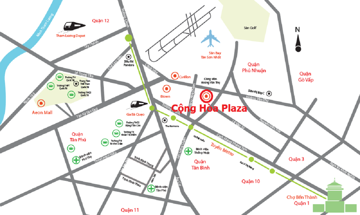 Căn hộ Cộng Hòa Plaza có vị trí đắc địa ngay cạnh sân bay, thuộc quỹ đất hiếm hoi còn sót lại ngay trung tâm Tân Bình, giúp cư dân dễ dàng Kết nối và thuận tiện di chuyển mọi nơi trong thành phố. Đường Cộng Hòa còn là trục đường xương sống tại khu vực Quận Tân Bình, một trong những trục giao thông huyết mạch kết nối các điểm trọng điểm phía Đông và Tây thành phố.
