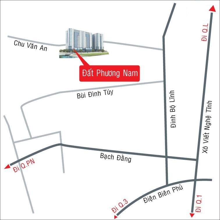 Căn hộ Đất Phương Nam trải dài 120m trên lô đất mặt tiền đường Chu Văn An có lộ giới 25m, nằm giữa khu quy hoạch đô thị trung tâm của quận Bình Thạnh và ngay cửa ngõ của miền Đông Tp.HCM.
