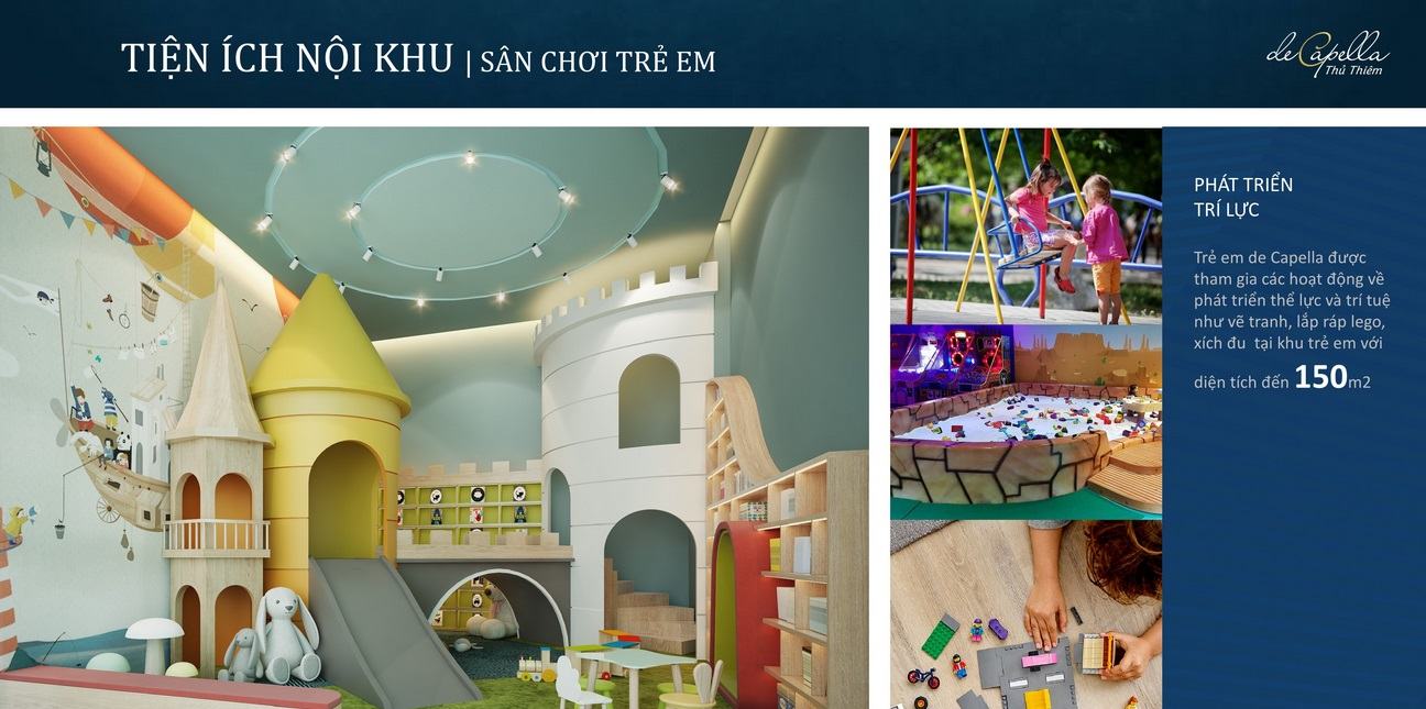 | Tiện ích De Capella Quận 2 | Nhà trẻ, Siêu thị tiện lợi, Hồ bơi, Công viên cây xanh, Gym, Spa, Khu giải trí vui chơi trẻ em, Nhà sinh hoạt cộng đồng,… |