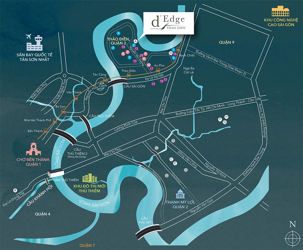 D’Edge tọa lạc ngay mặt tiền Nguyễn Văn Hưởng, P. Thảo Điền, Tp. Thủ Đức, Tp.HCM. D’Egde Thảo Điền sở hữu vị trí vô cùng đắc địa trên đường Nguyễn Văn Hưởng, đây được xem như mảnh đất vàng còn lại vì tại nơi đây là khu vực có nhiều người nước ngoài sinh sống và làm việc từ rất lâu nơi đây hình thành nên khu dân cư Âu Mỹ nên rất đa dạng về nền văn hóa cũng như môi trường sống rất văn minh hiện tại mang phong cách Châu Âu. Đặc biệt, từ dự án di chuyển đến các quận trong trung tâm thành phố vô cùng tiện lợi.