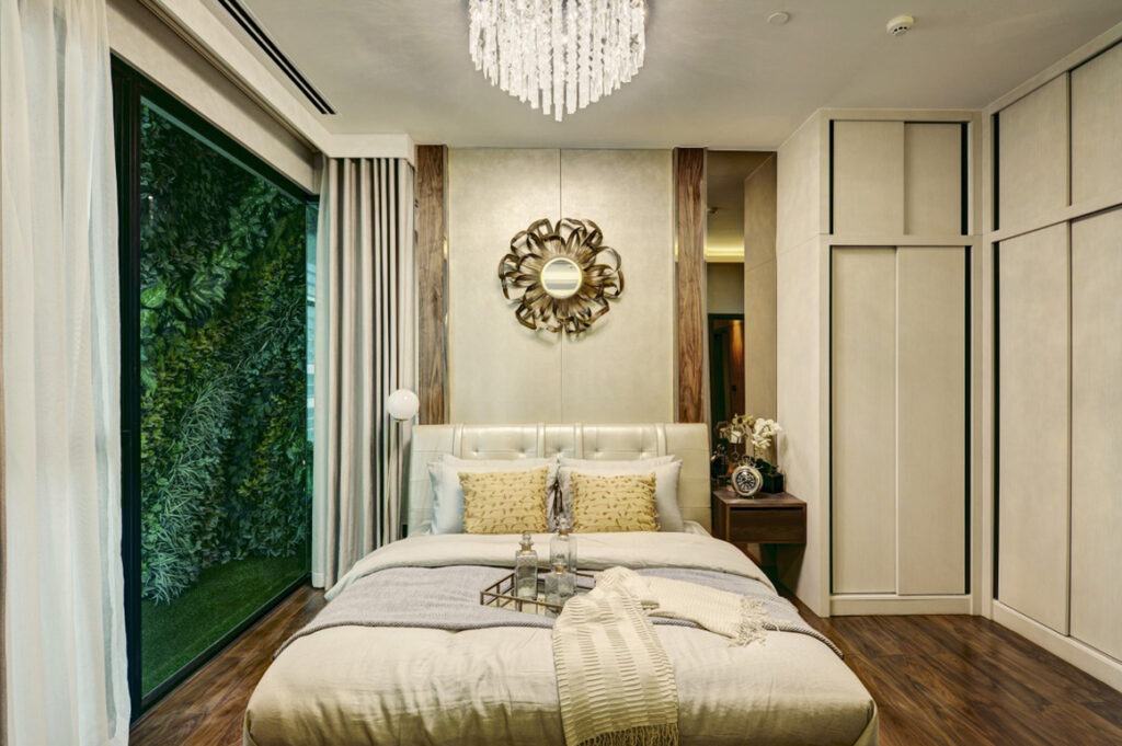 Nhà mẫu được thiết kế sang trọng, tiện nghi đem lại cảm giác ấm cúng. Màu sắc cơ bản của căn hộ là tông màu kem nhã nhặn, mang dấu ấn phương Tây. Chủ đầu tư dự án đã chú ý đến dự bày trí trong từng góc nhỏ tại căn phòng, mang đến niềm cảm hứng và sự tươi mới, phấn khởi.