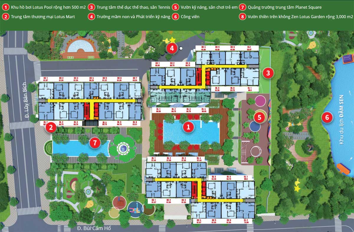 | Tiện ích Diamond Lotus Lake View | • Trường mầm non và Trường Tiểu học, Công viên , ,Trung tâm thể dục thể thao (gym, spa, yoga…), Quảng trường, Vườn nướng BBQ, khu ẩm thực, thư viện, phòng sinh hoạt chung, đường chạy bộ, bể bơi… |
