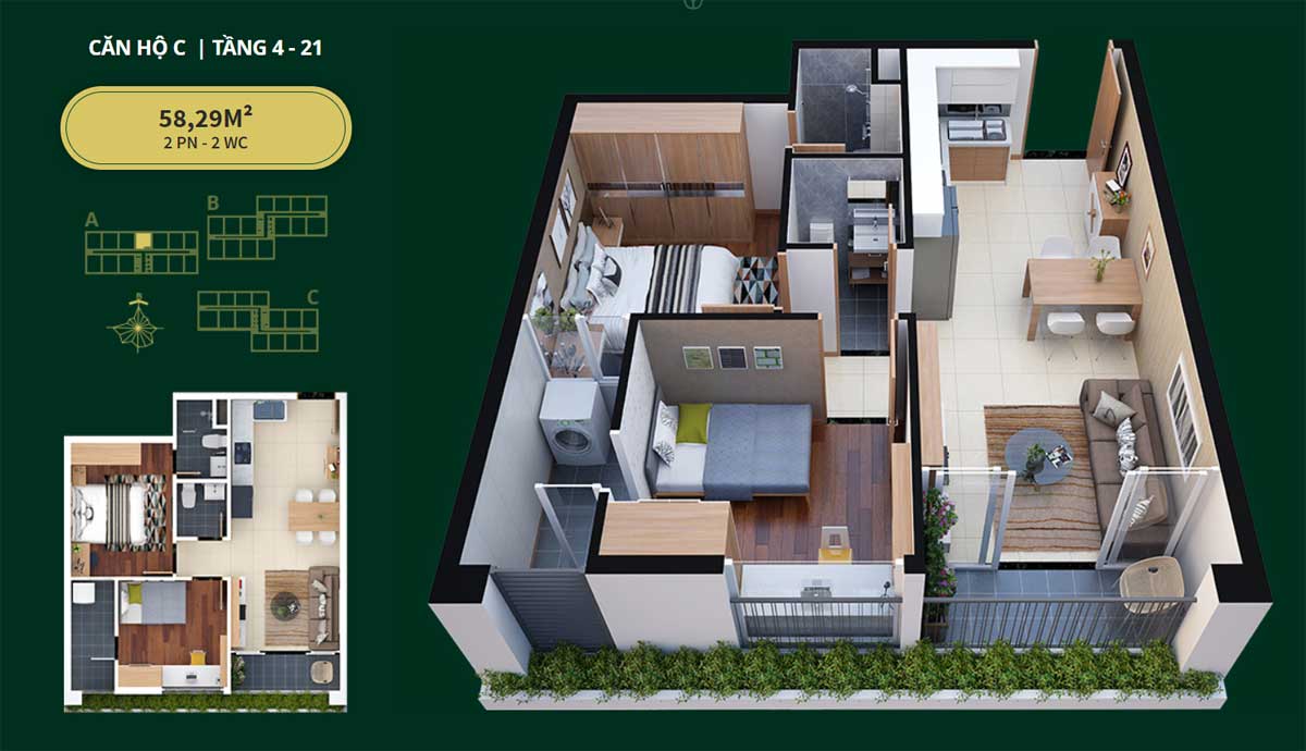 | Quy mô dự án | • 3 THÁP & 21 TẦNG |