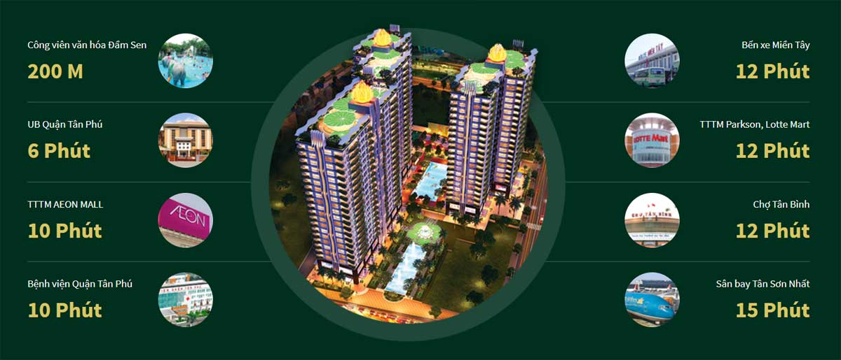 Ngoài tiện ích nội khu đẳng cấp, khả năng kết nối hoàn hảo từ căn hộ Diamond Lotus Lake View Tân Phú như sau: