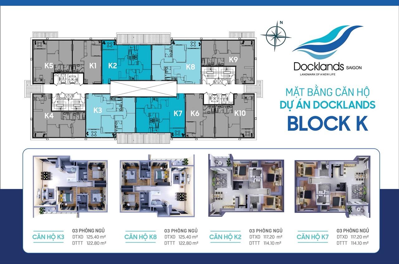 Mặt bằng thiết kế dự án Docklands Saigon Quận 7 triển khai xây dựng trên khu đất 7.024 m2 bao gồm 2 tòa tháp cao 22 tầng (gồm 2 tầng hầm). Tổng cộng 356 căn hộ với các loại diện tích từ 74 m2 – 127 m2 cho căn 1 – 3 phòng ngủ