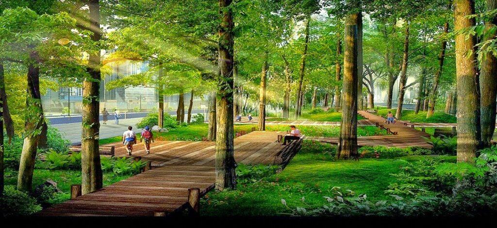 Bên cạnh các hạng mục hạ tầng chung như thang máy, hệ thống PCCC, hệ thống cáp truyền hình nối đến mỗi căn hộ,… chủ đầu tư dành hơn 60% diện tích cho cây xanh và tiện ích công cộng như sân chơi trẻ em, câu lạc bộ cộng đồng,…