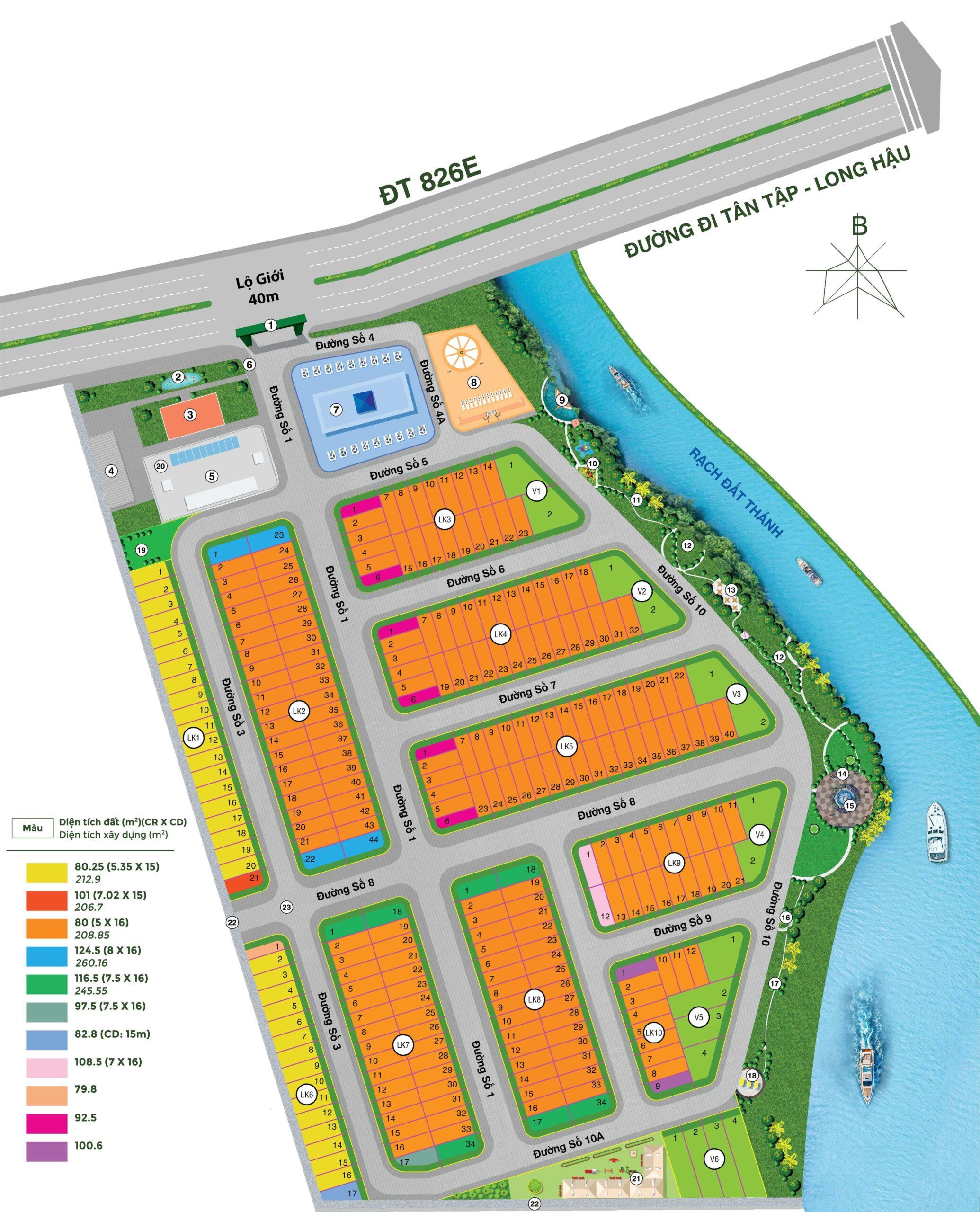 Mặt bằng Dự án Khu đô thị Thương mại đẳng cấp Ven Sông Elite Life Long An được xây dựng trên quy mô hơn 5.3ha với 2 khu chính là: Khu ở gồm nhà liên kế, nhà phố, nhà vườn & Khu công trình dịch vụ, công cộng. Nhà phố Elite Life được quy hoạch năm trong tổng thể một khu đô thị kiểu mẫu, đồng bộ, hiện đại. Với sản phẩm là nhà phố liên kế, biệt thự được xây sẵn theo xu hướng thiết kế hiện đại, đầy sang trọng, lịch lãm, thể hiện đẳng cấp xứng tầm với những cư dân văn minh, thời thượng.