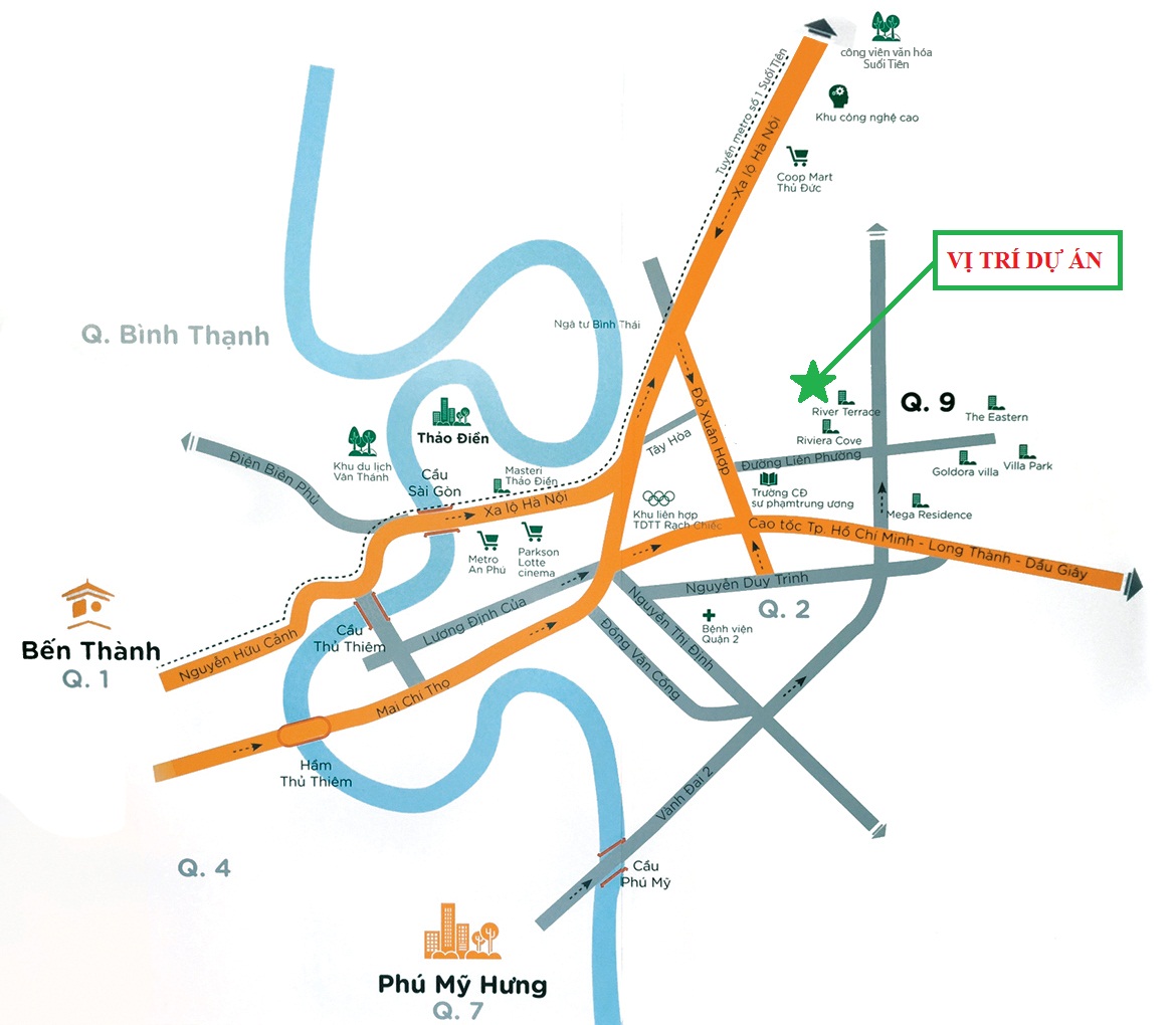TIện ích ngoại khu: Bệnh viện đa khoa; bệnh viện quốc tế; hệ thống trường học các cấp; đơn vị hành chính; sân tập golf; trung tâm TDTT; siêu thị; KCN cao quận 9;… Các tiện ích hiện hữu trong phạm vi chỉ vài km.