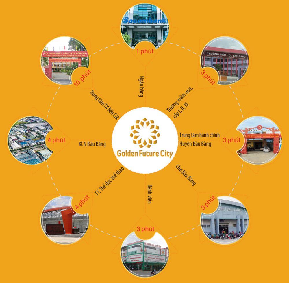 Tọa lạc ngay trung tâm công nghiệp – đô thị Bàu Bàng, cửa ngõ trọng yếu kết nối Bình Dương với thành phố Đồng Xoài và tỉnh Tây Nguyên, Golden Future City hứa hẹn sẽ mang cho các nhà đầu tư cơ hội sinh lời vô cùng hấp dẫn trong những tháng cuối năm.