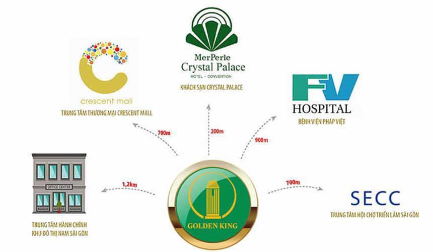 Nằm ngay trong khu đô thị Phú Mỹ Hưng sầm uất, từ Golden King có thể dễ dàng di chuyển đến các tiện ích trong khu vực, cụ thể như: