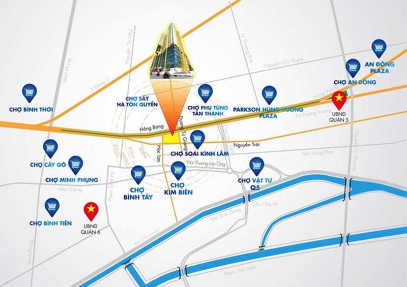 Tọa lạc nằm ở khu vực trung tâm Quận 5 nên cư dân dễ dàng được hưởng các tiện ích xung quanh như: Trường THCS Hồng Bàng, trường THCS Hậu Giang, chợ Kim Biên, chợ Bình Tây, bệnh viện Hùng Vương, Bệnh viện Đại học Y Dược, trung tâm thương mại, khu du lịch, giải trí, nhà hàng,… phục vụ đầy đủ nhu cầu sống và sinh hoạt cho cư dân nơi đây một cách thuận tiện.