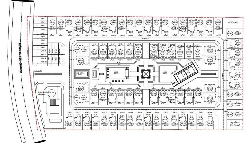 | Biệt thự vườn: | 78 căn diện tích: 264 m2 – 361 m2 |