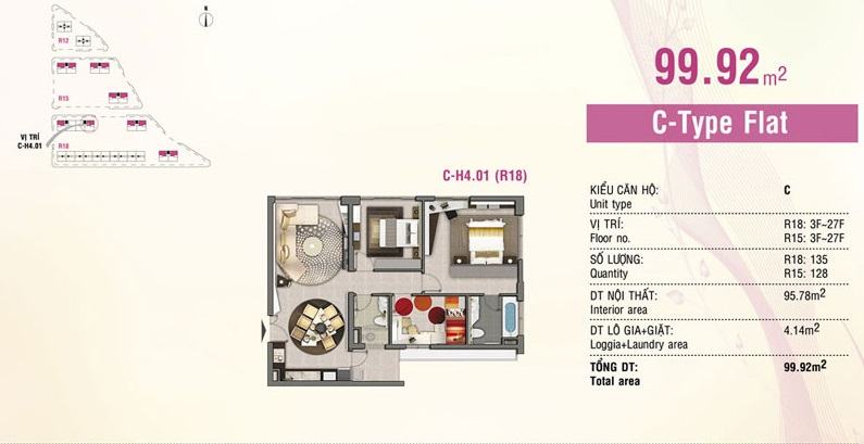 Căn hộ tiêu chuẩn, diện tích từ 81- 145m2, trong đó, số lượng căn hộ diện tích từ 81~116m2, chiếm đến hơn 53% toàn công trình, giúp người mua dễ chọn lựa căn hộ phù hợp với khả năng tài chính và nhu cầu của mình.