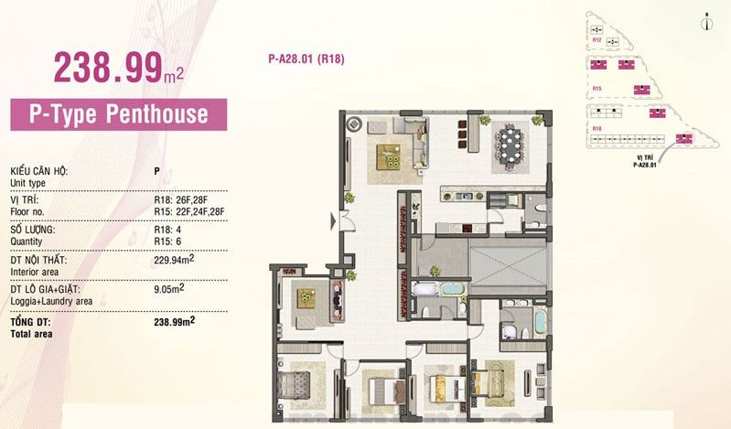Biệt thự trên cao penthouse Happy Valley không chỉ đặc biệt vì số lượng chỉ có 10 căn mà còn bởi lần đầu tiên xuất hiện penthouse một tầng. Penthouse thông thường có khoảng thông tầng thì penthouse một tầng vừa mang đến một phong cách sống biệt thự trên cao mới lạ, độc đáo vừa giúp không gian mở rộng để dễ dàng thiết kế, bố trí không gian chức năng kết nối trên cùng một mặt bằng. Diện tích mỗi penthouse khoảng 239m2.