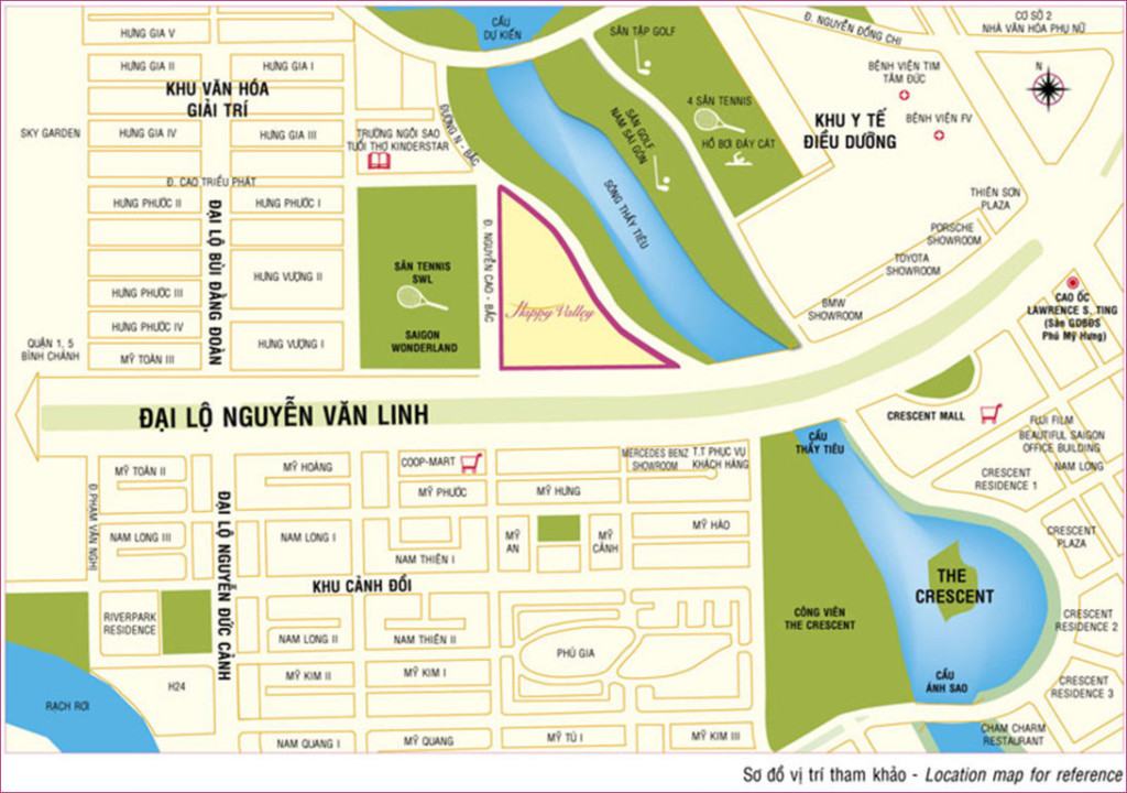 Happy Valley nằm trong trung tâm khu Phú Mỹ Hưng, nằm ngay trên trục đường Nguyễn Văn Linh nối dài 6 làn xe lớn không lo bị kẹt xe. Thuộc khu dân cư an ninh, camera và bảo vệ 24/24.