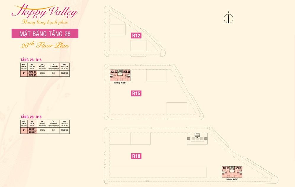 Dự án Căn Hộ Happy Valley gồm có 14 tòa tháp, có số tầng từ 8 – 28 tầng, được xây dựng trên khuôn viên đất 34000 m2. Bình quân mỗi căn hộ Happy Valley được bố trí 1 chỗ đậu xe ô tô, 2 chỗ đậu xe gắn máy.
