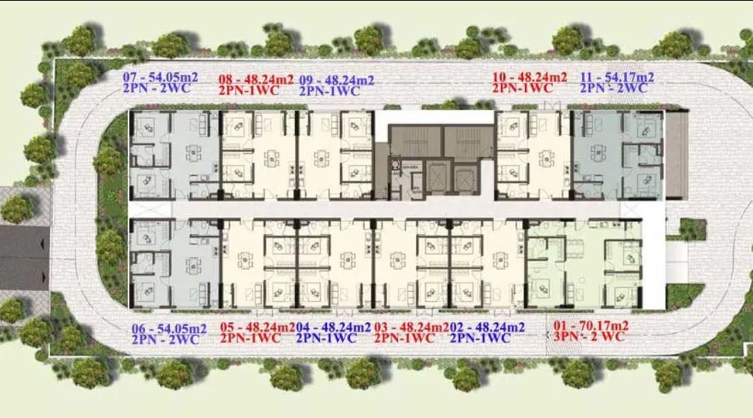 | Quy mô dự án | • 1 block cao 14 tầng cùng tổng số 121 căn hộ (1 hầm để xe, 2 tầng tiện ích, 11 tầng căn hộ)• Diện tích trung bình căn hộ 48,24 – 72m2 (2 – 3 PN) |