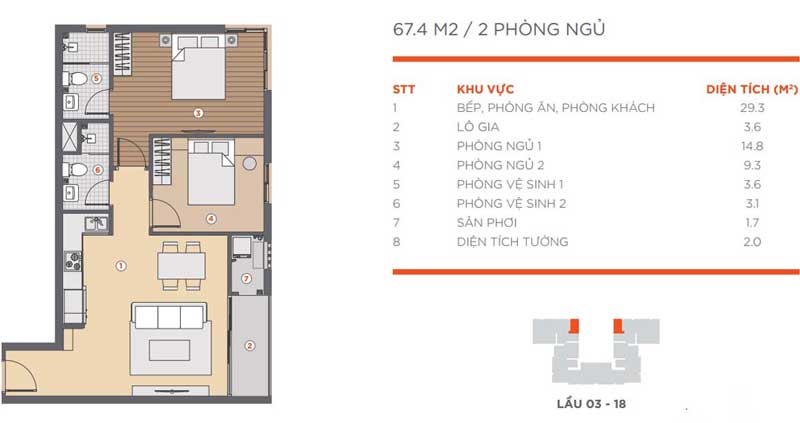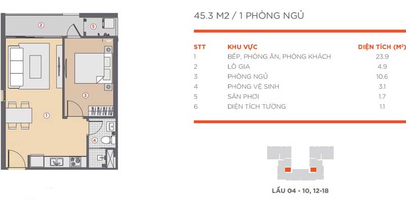 – Căn hộ: Từ tầng 4 đến tầng 18, trong đó khu vườn treo sẽ nằm ở tầng 11