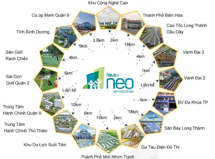 Dự án Hausneo rất gần để kết nối đến các khu vực chức năng và các khu vực tiện ích lân cận: