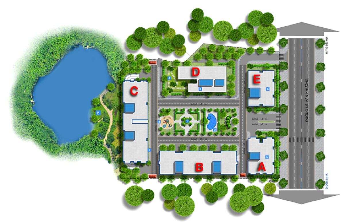 Nằm cạnh hồ điều tiết nước trong xanh rộng hơn 30.000m2, Hiệp Thành Buildings được hưởng luồng hơi nước tỏa lên làm dịu mát bầu không khí, kết hợp với thiết kế chú trọng vào mảng xanh thiên nhiên, cây xanh bao phủ rộng khắp dự án tạo cảm giác thoải mái và dễ chịu cho cư dân sinh sống tại nơi đây.