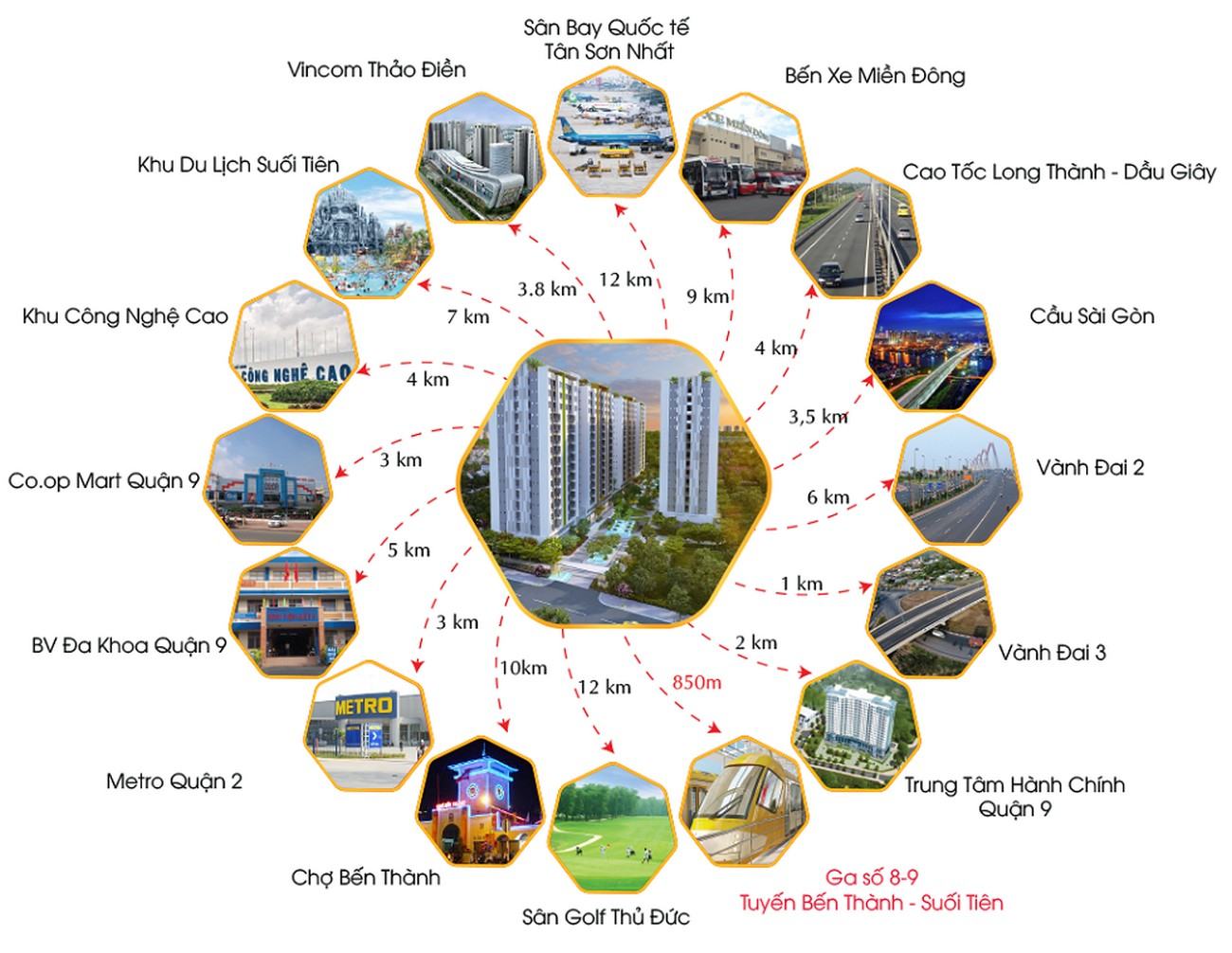 Khi tuyến Metro số 1 Bến Thành Suối Tiên đi vào hoạt động, đường Song Hành Xa Lộ Hà Nội sẽ giúp khách hàng kết nối với các tiện ích ngoại khu như: Vincom Thảo Điền Quận 2, Bến xe Miền Đông mới, cao tốc Long Thành Dầu Giây, Khu Công Nghệ Cao, trung tâm Quận 1 và Bình Thạnh…