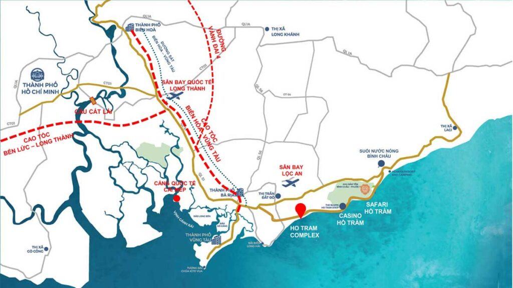 Bên cạnh đó, Hồ Tràm Complex còn có khả năng kết nối với 3 sân bay gồm dự án sân bay Lộc An, sân bay quốc tế Long Thành, sân bay Phan Thiết.