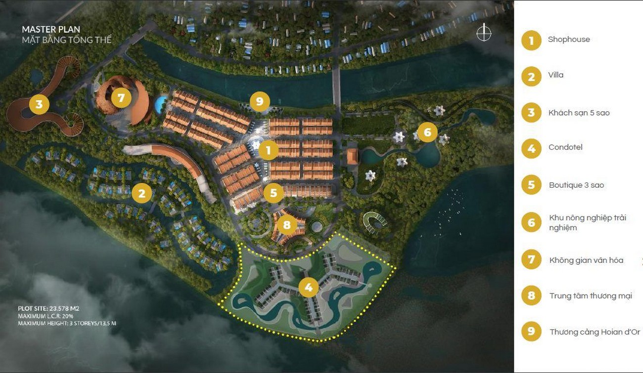Hội An D’or sở hữu tổng diện tích trên 24.8ha, đầu tư gần 3,918 tỷ đồng với quy mô: