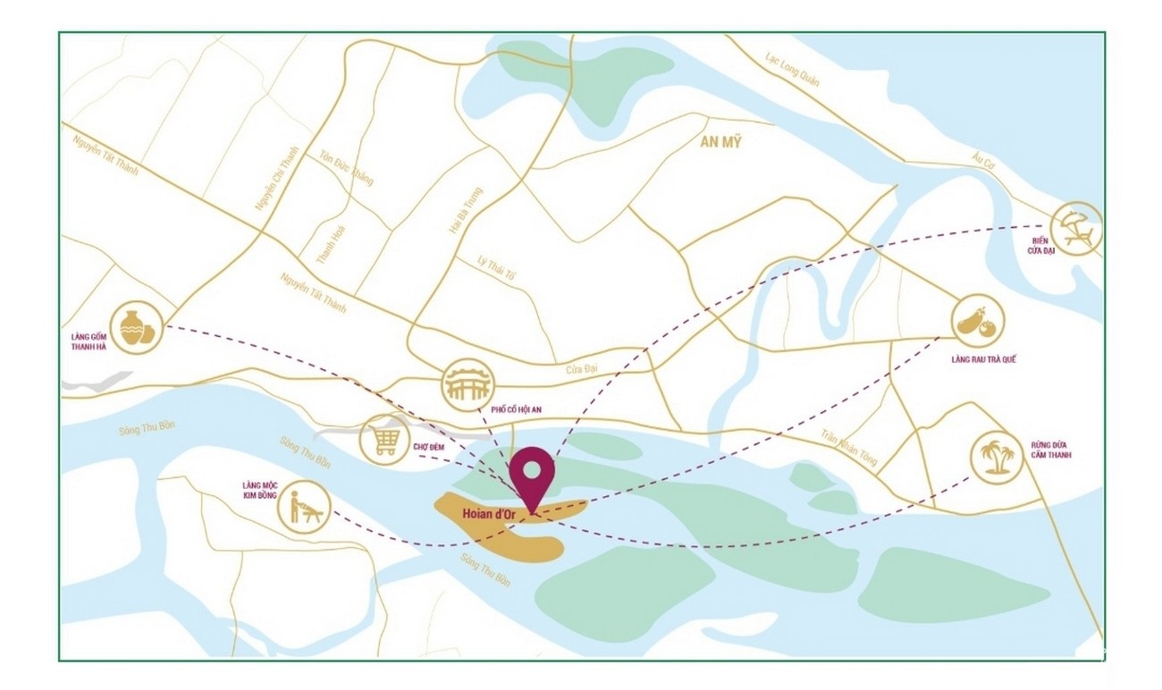 Khu du lịch sinh thái Hội An D’or nằm tại vị trí trung tâm Thành Phố Hội An, chỉ cách khu phố cổ 800m. Hội An D’or có vị trí đắc địa, là bất động sản nghỉ dưỡng duy nhất hiện nay giữa trung tâm phố cổ Hội An.