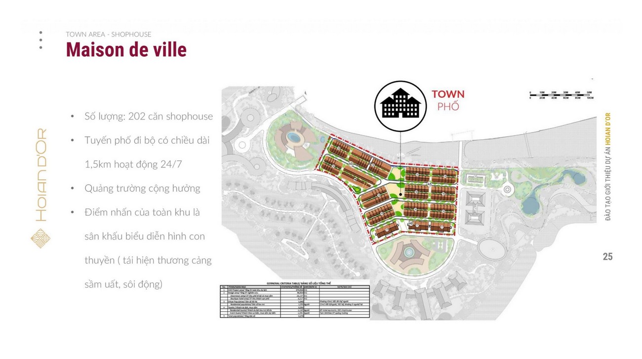 Đặc biệt, với thương cảng thực cảnh Hoian d’Or Marina, khu shophouse Maison de Ville tái hiện lại một hình bóng Hội An trên bến dưới thuyền sầm uất một thời.